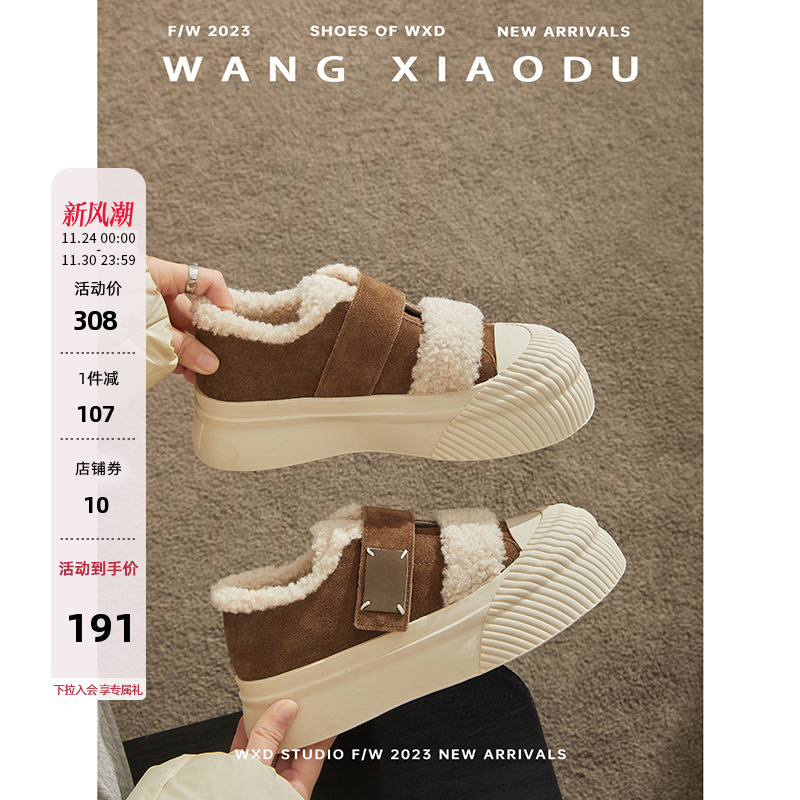 Lu Xiaobu | Fleece white shoes, autumn and winter wool thickened warm sneakers, thick-soled leather casual shoes, women