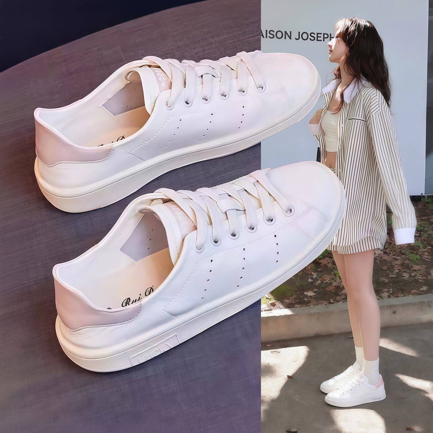 Sanli simple and versatile lace-up white shoes women's new comfortable and breathable flat round toe casual board shoes for spring 2026