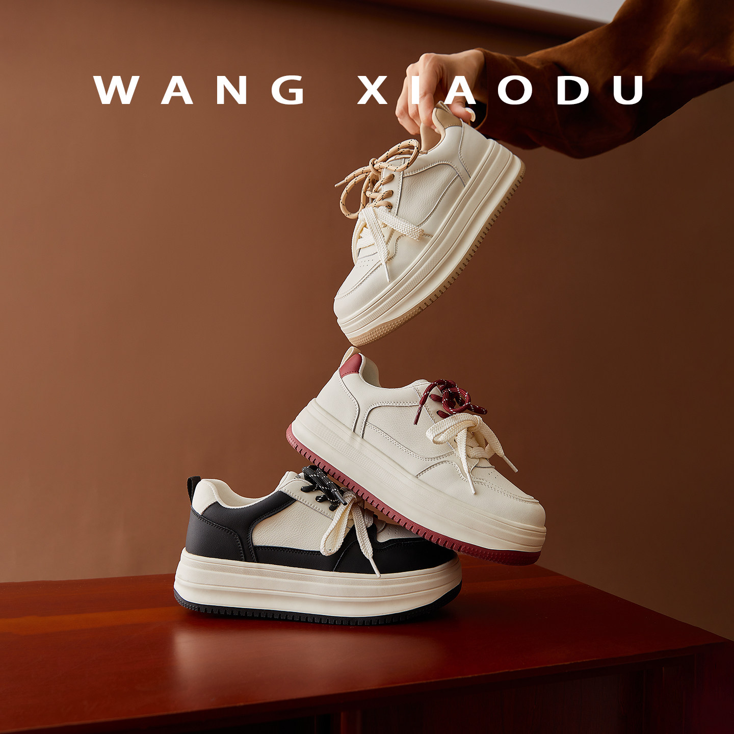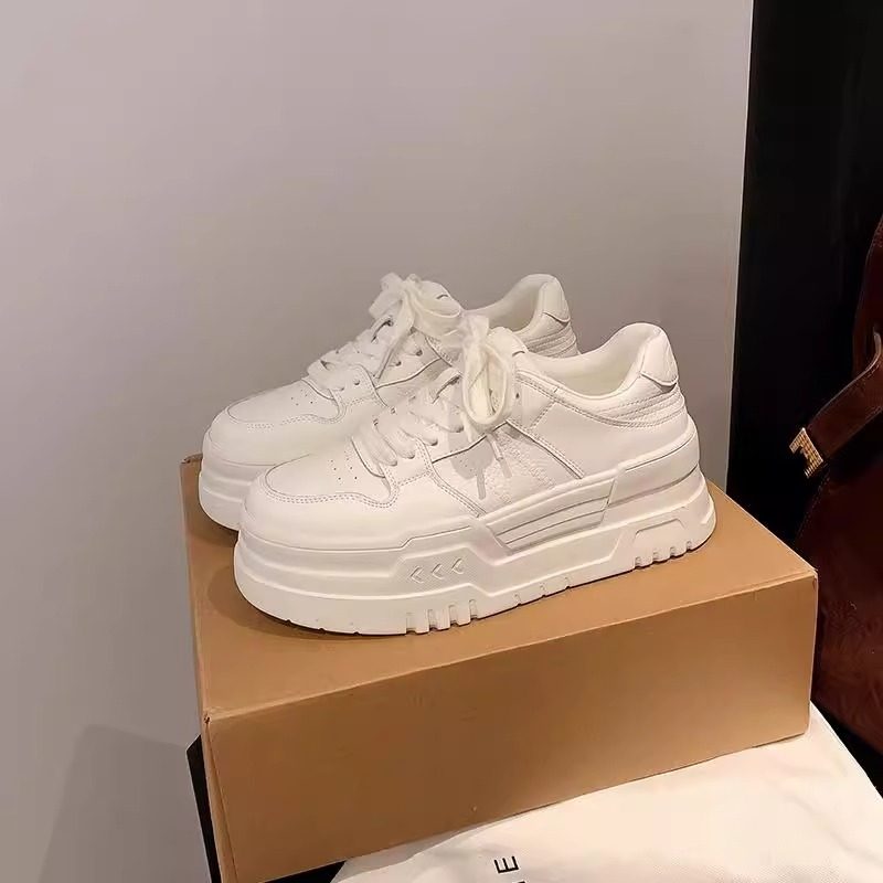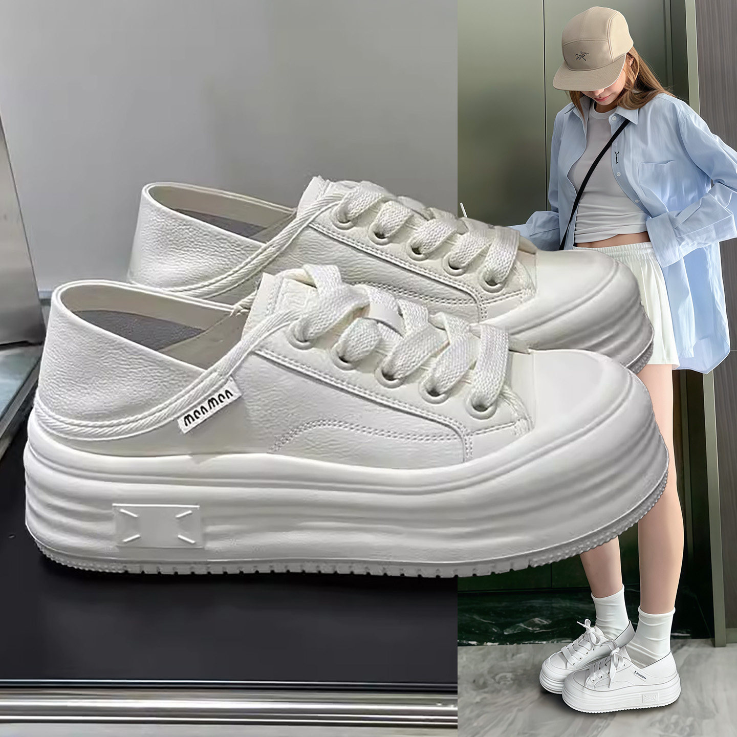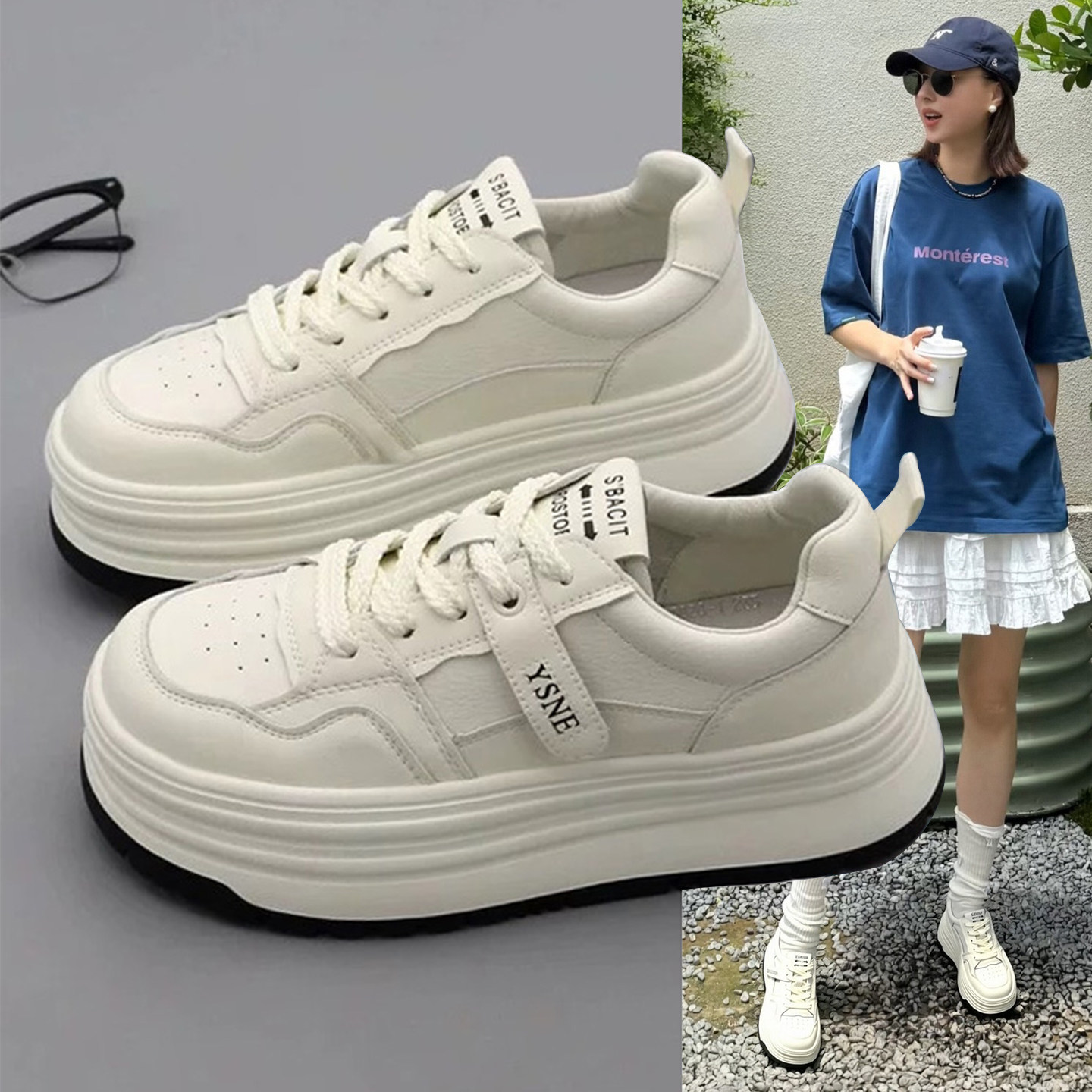 Hong Kong leather platform white shoes women's height increase breathable muffin shoes 2026 new versatile pure leather casual board shoes trend