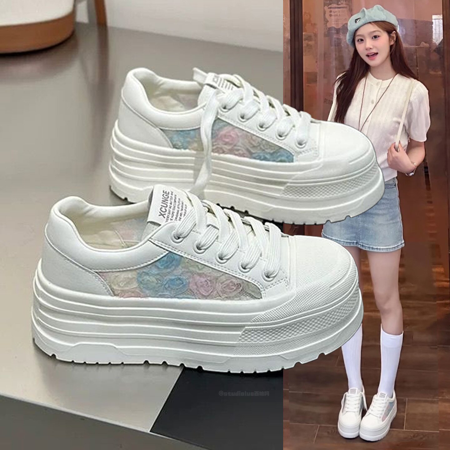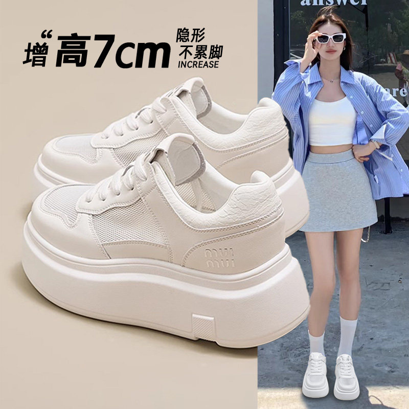Hong Kong mesh breathable muffin casual board shoes women's 2026 summer new versatile small man thick-soled height-boosting white shoes