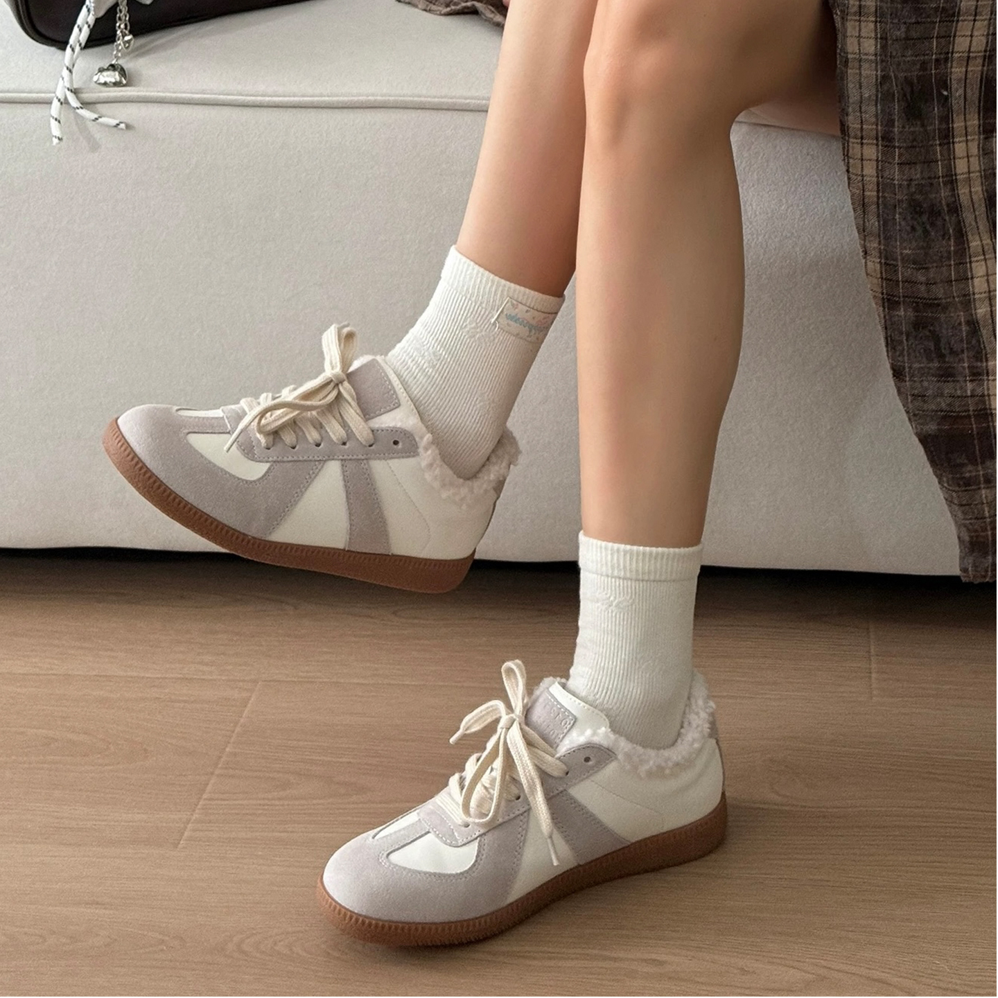 Hong Kong leather lambswool warm German training shoes women's 2025 winter versatile retro Forrest Gump shoes casual cotton shoes Korean version