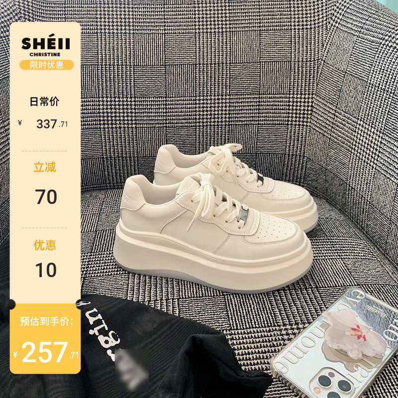 [sheii Su Yinyin] for small people ~ lace-up leather casual sports thick sole to increase the height of small white shoes women's board shoes