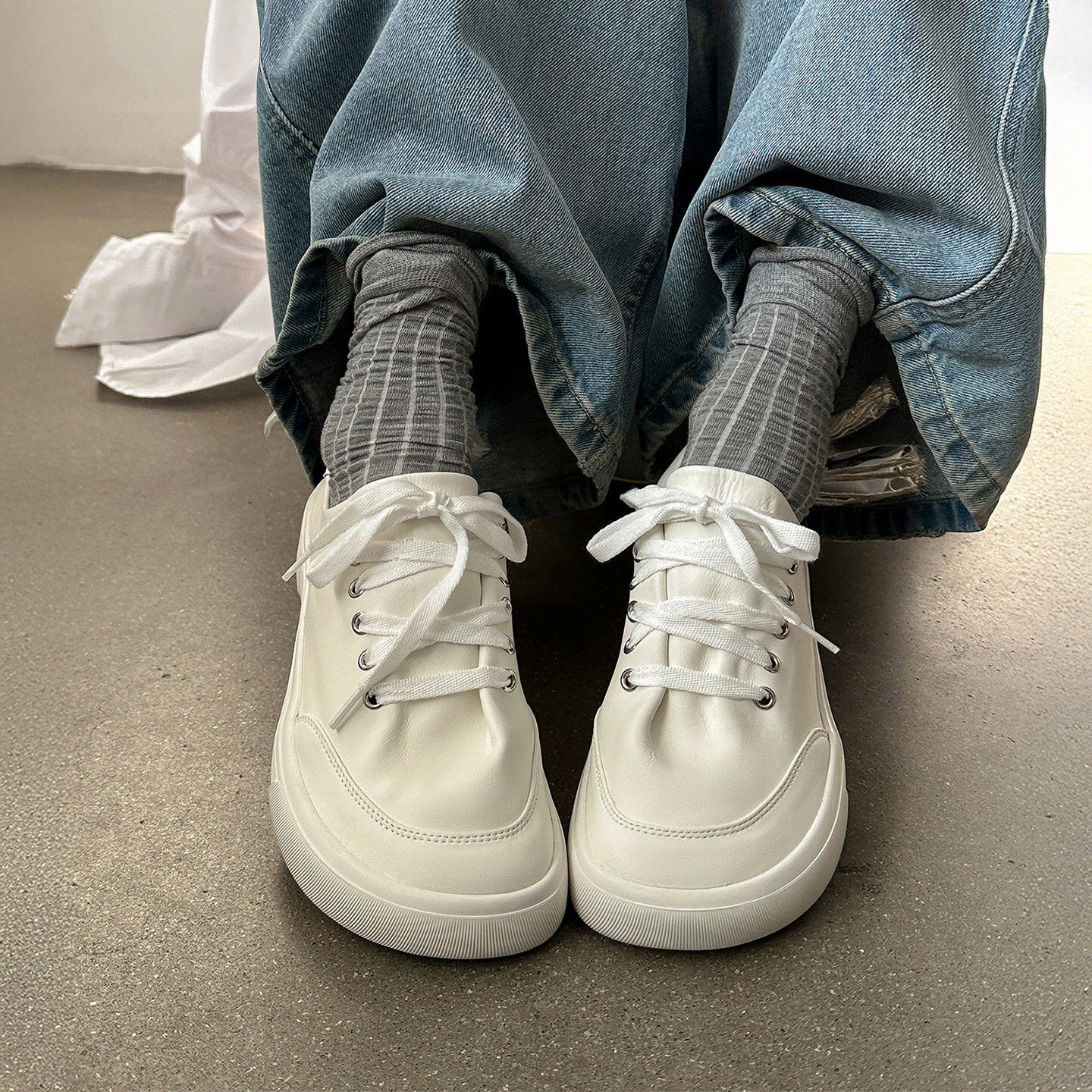 Hong Kong fashion leather versatile white shoes women's 2026 spring and autumn round toe Korean version of low-top muffin thick-soled casual board shoes