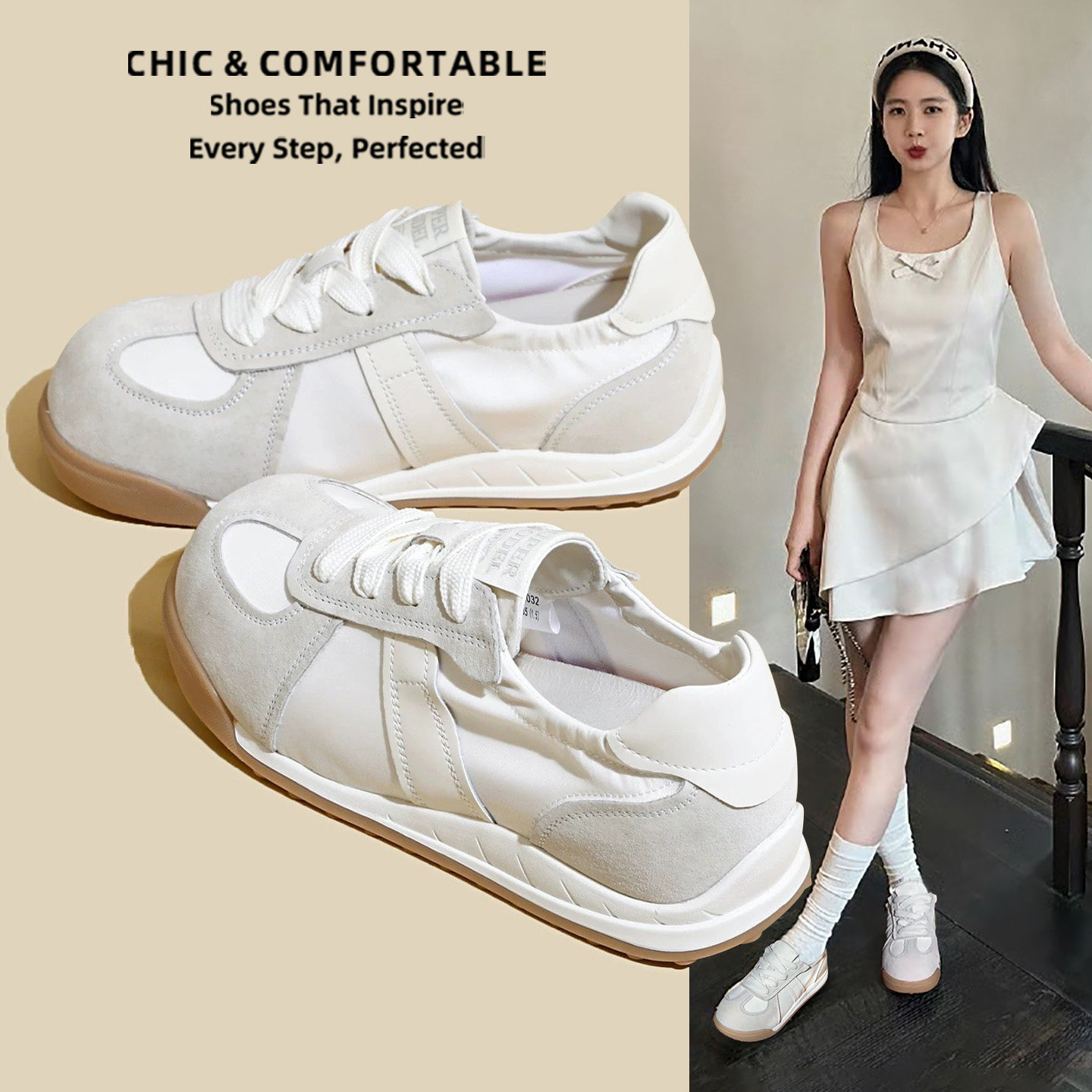 Sanli genuine leather platform shoes, versatile German training shoes, women's 2026 spring and autumn, Korean version of round-toed white shoes, lightweight casual shoes