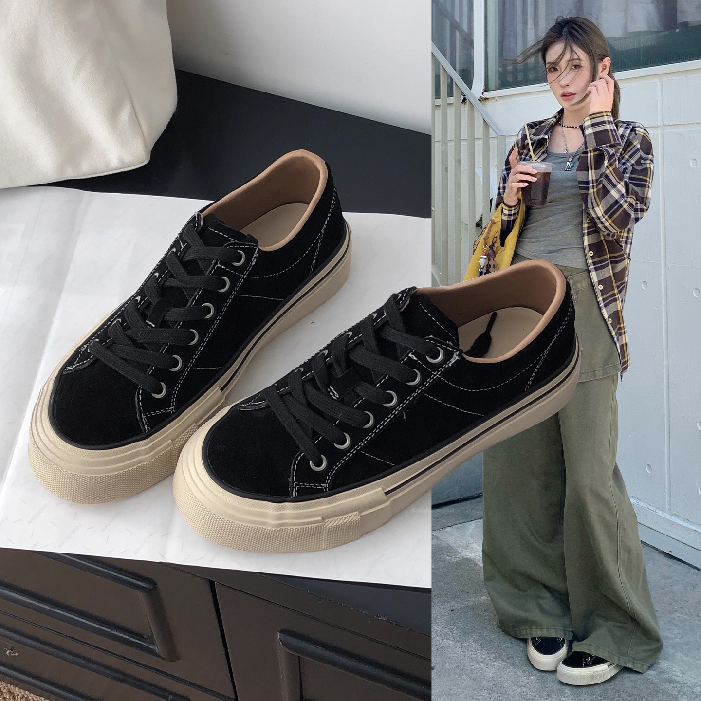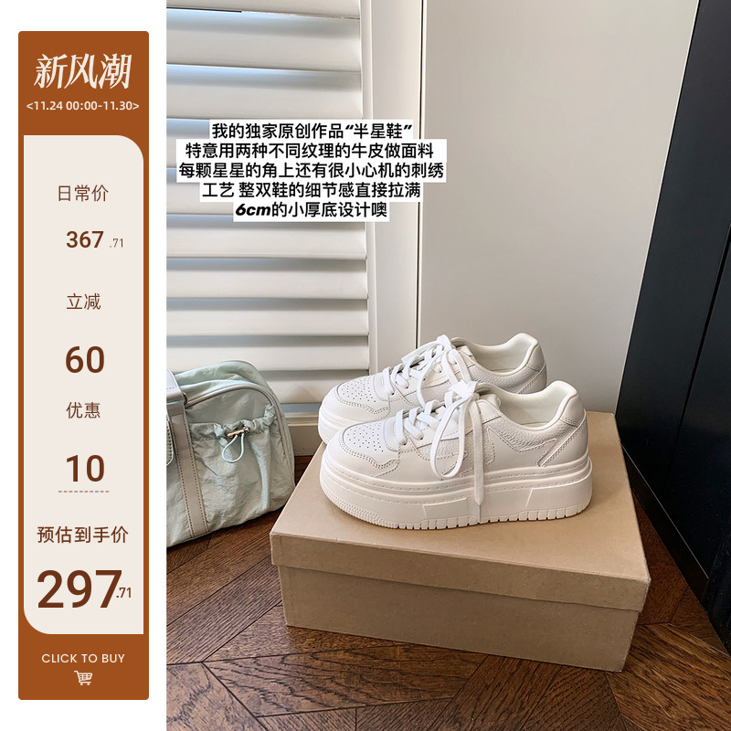 【sheii Su Yinyin】Ju Jingyi has the same style ~ original thick-soled cowhide casual board shoes, star shoes, women's white shoes