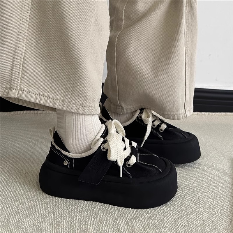 Hong Kong pump-mouth lace-up bread shoes women's 2025 autumn/winter new platform leather casual shoes versatile sports shoe trend