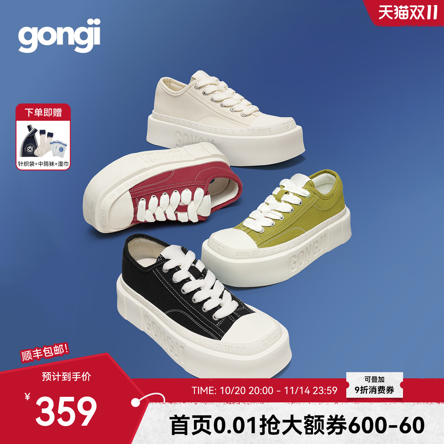 GONGJI square toe platform canvas shoes women's casual shoes niche board shoes and white shoes for men