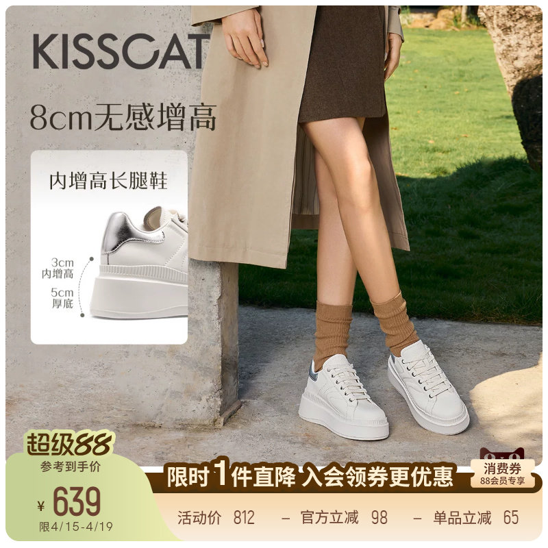 Italy SANLI ~ thick-soled versatile white shoes women's spring new fashionable and comfortable casual board shoes to increase the height of muffin shoes