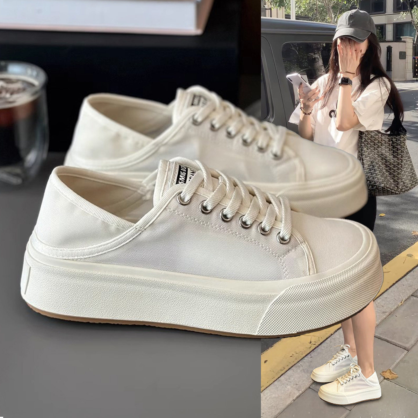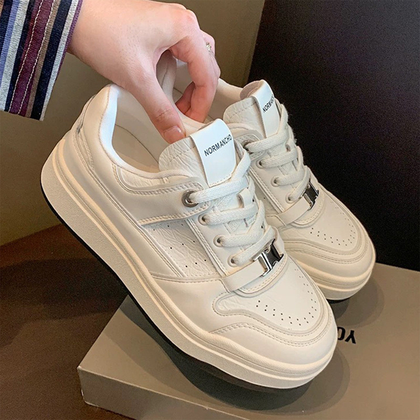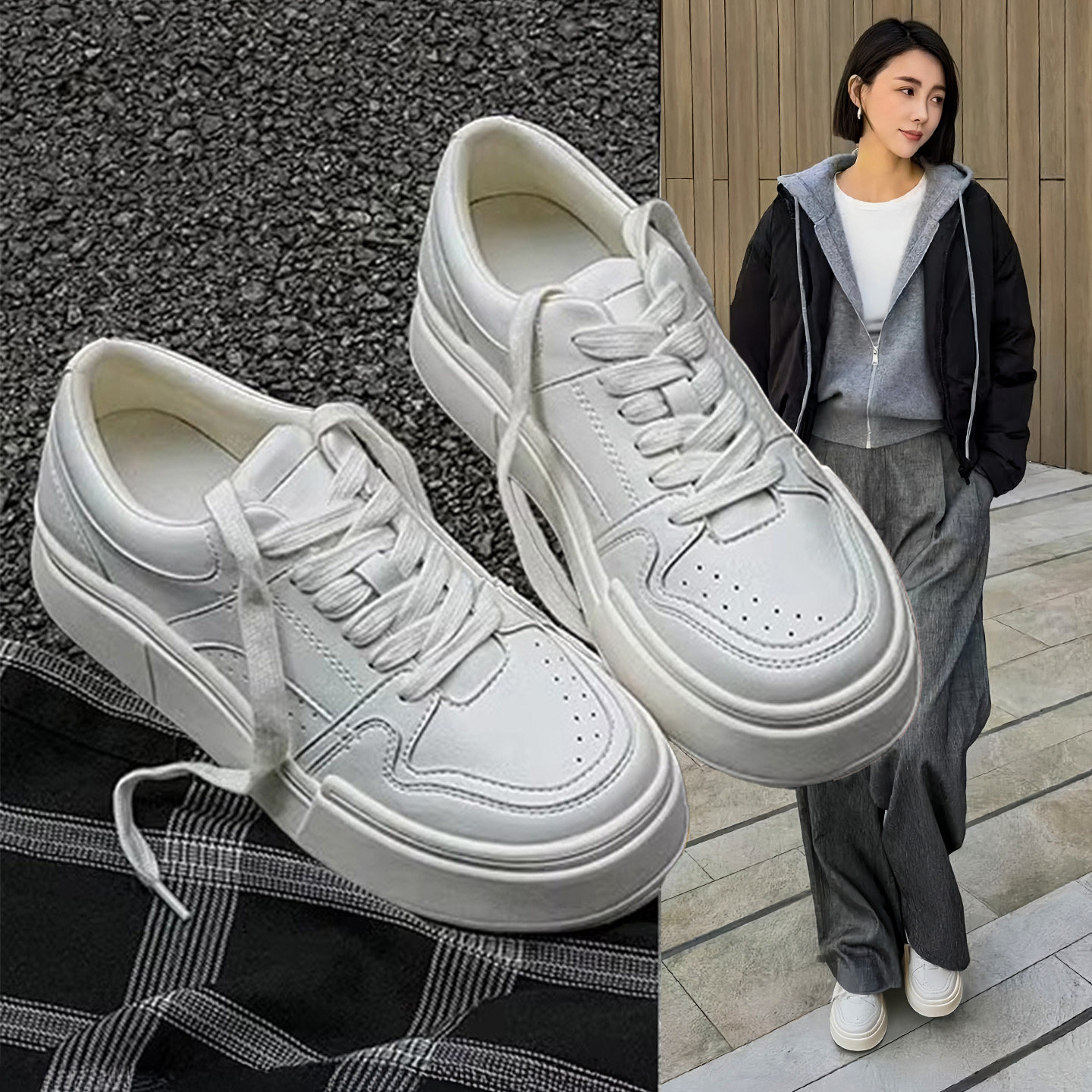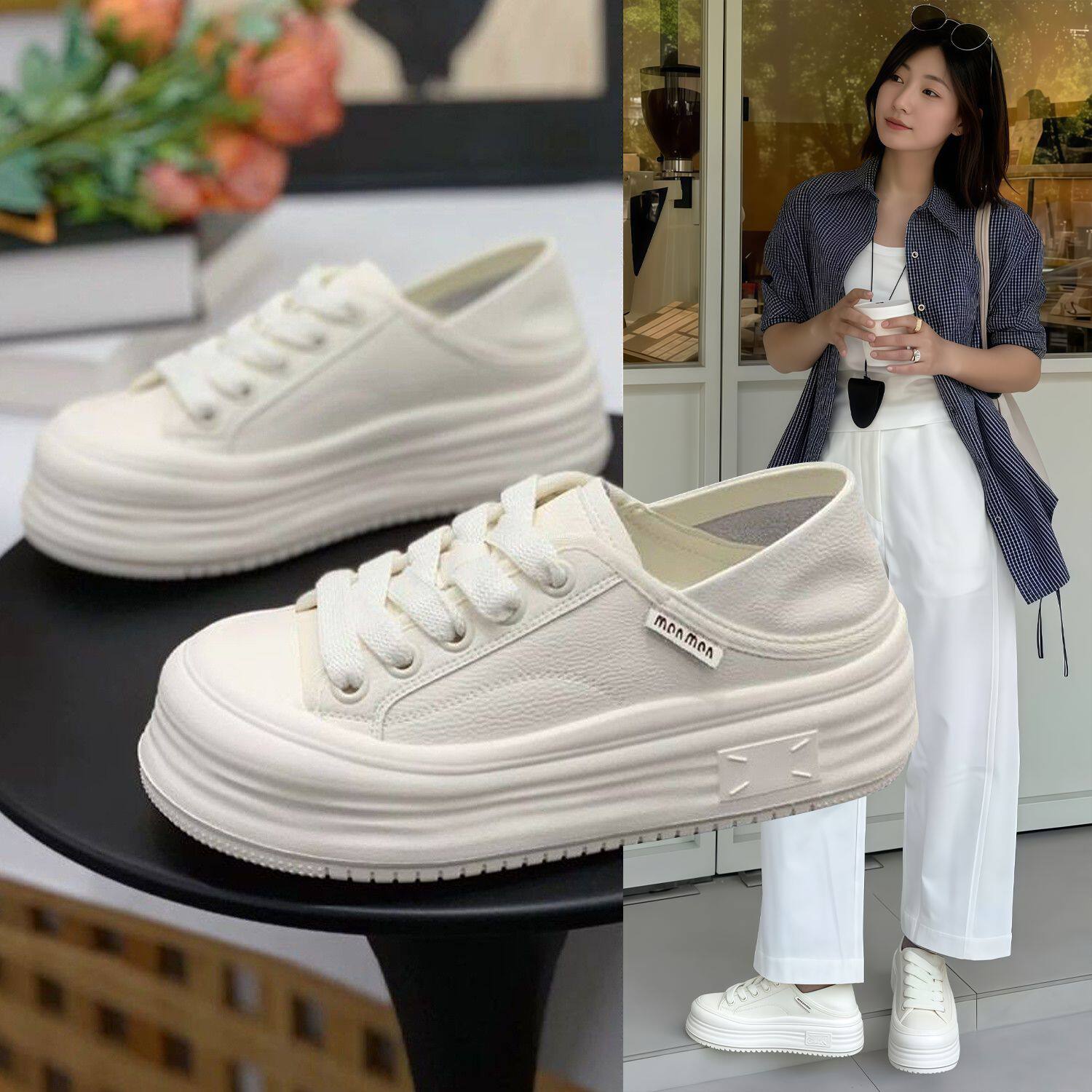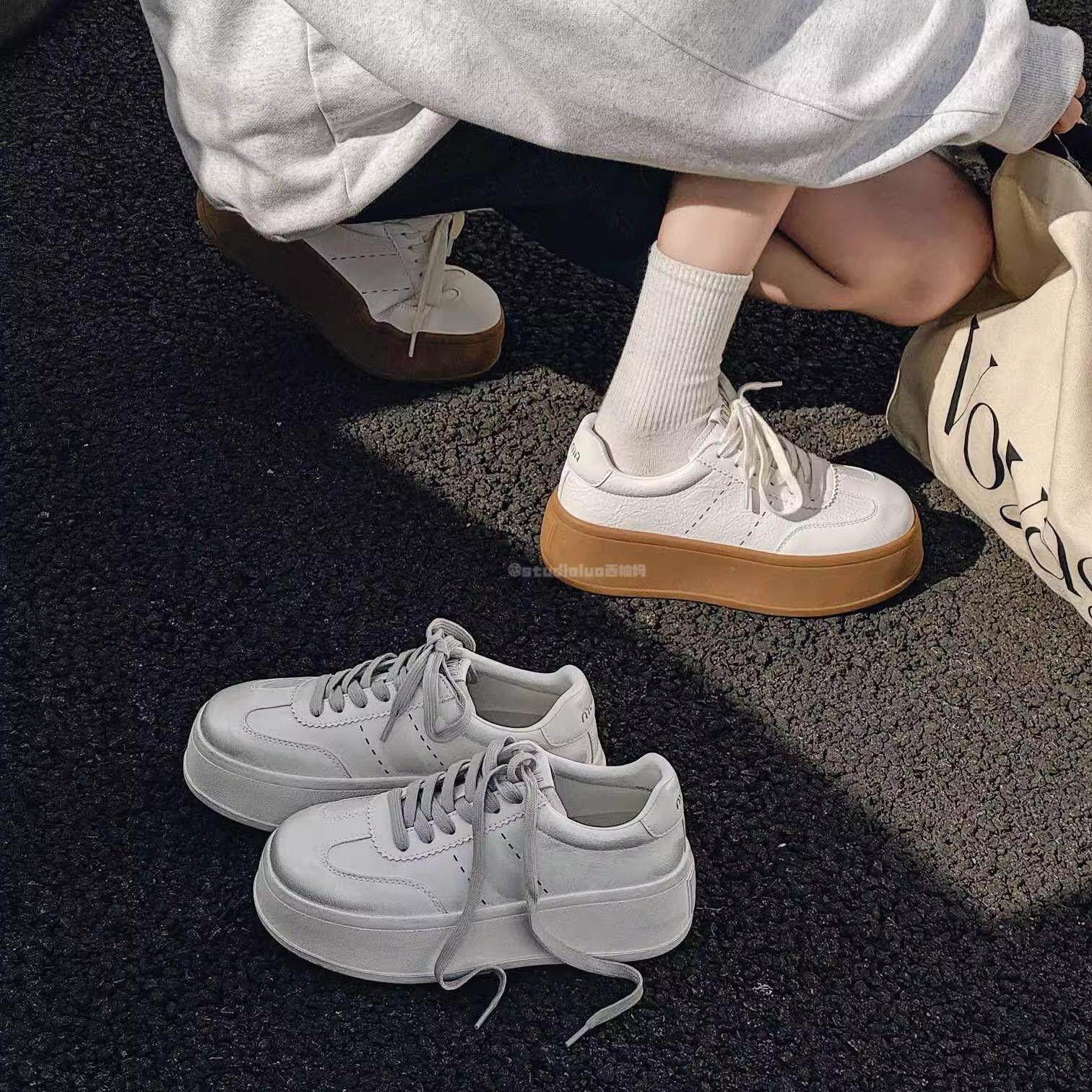 Hong Kong leather platform white shoes women's 2026 spring and autumn new versatile lightweight round toe two casual sports shoes