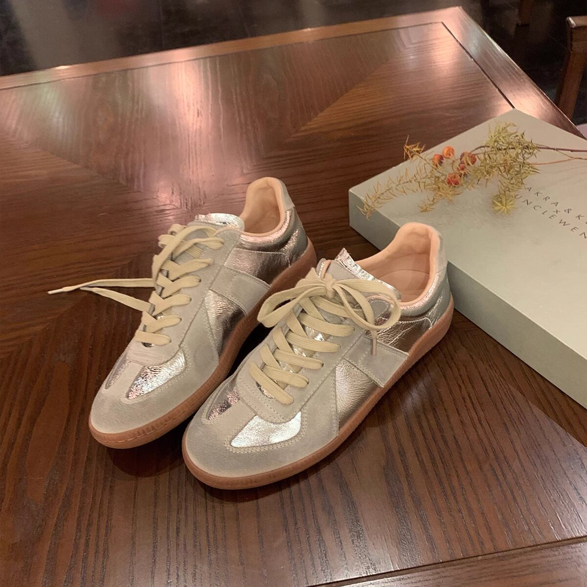 Hong Kong flat leather retro silver German training shoes women's 2026 spring and autumn new Korean casual board shoes design trendy