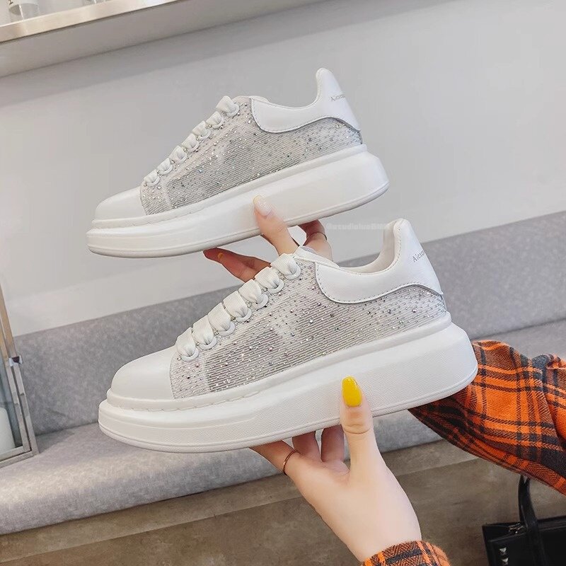 Sanli leather rhinestone platform shoes women's 2026 spring new beautiful fashion and versatile height-increasing casual shoes muffin shoes