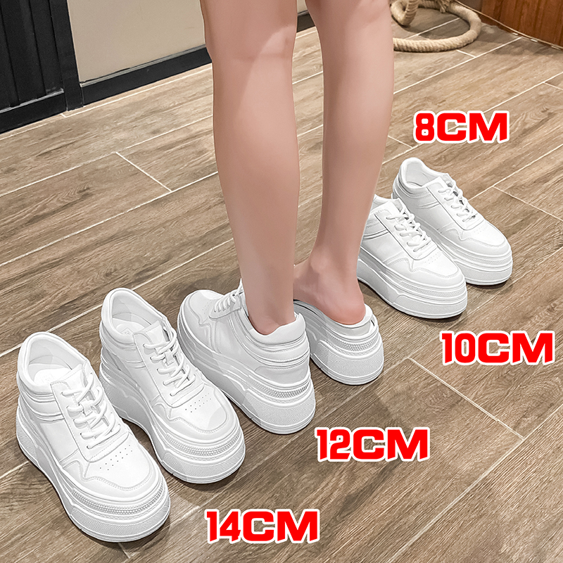 Height increase within 14 cm, women's shoes, invisible small body, mesh breathable 8, leather 12 cm, thick sole white shoes, 10 cm