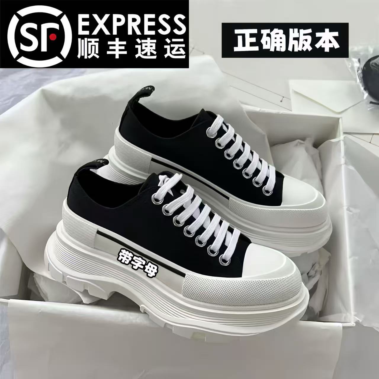 6CM heightened McQueen canvas shoes women's 2025 autumn and winter new leather platform white shoes couple daddy shoes men