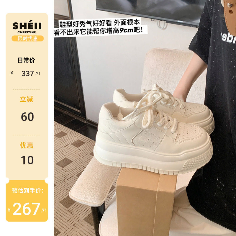 Hong Kong thick-soled heightening white shoes women's 2026 spring and autumn new leather explosive shoes versatile athleisure board shoes