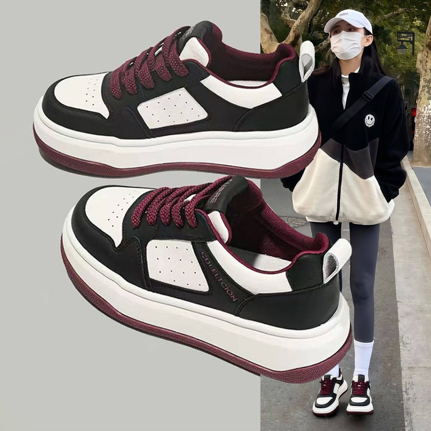 Hong Kong leather board shoes women's ins trend 2026 spring and autumn new fleece warm casual shoes versatile color-blocked sneakers