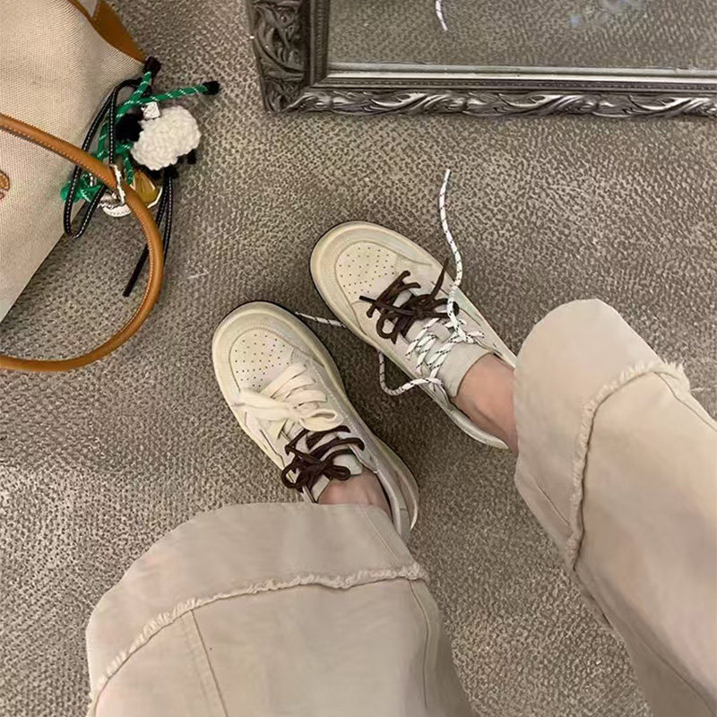 Hong Kong leather polishing color retro distressed board shoes women's 2026 spring new platform niche casual moral training shoes with laces