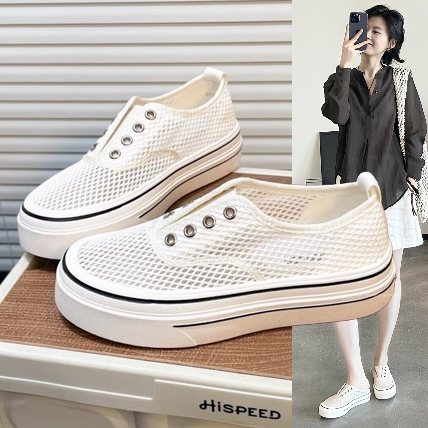 Hong Kong mesh breathable thick-soled round-toe white shoes women's 2026 spring/summer new fashion, casual and comfortable versatile board shoes