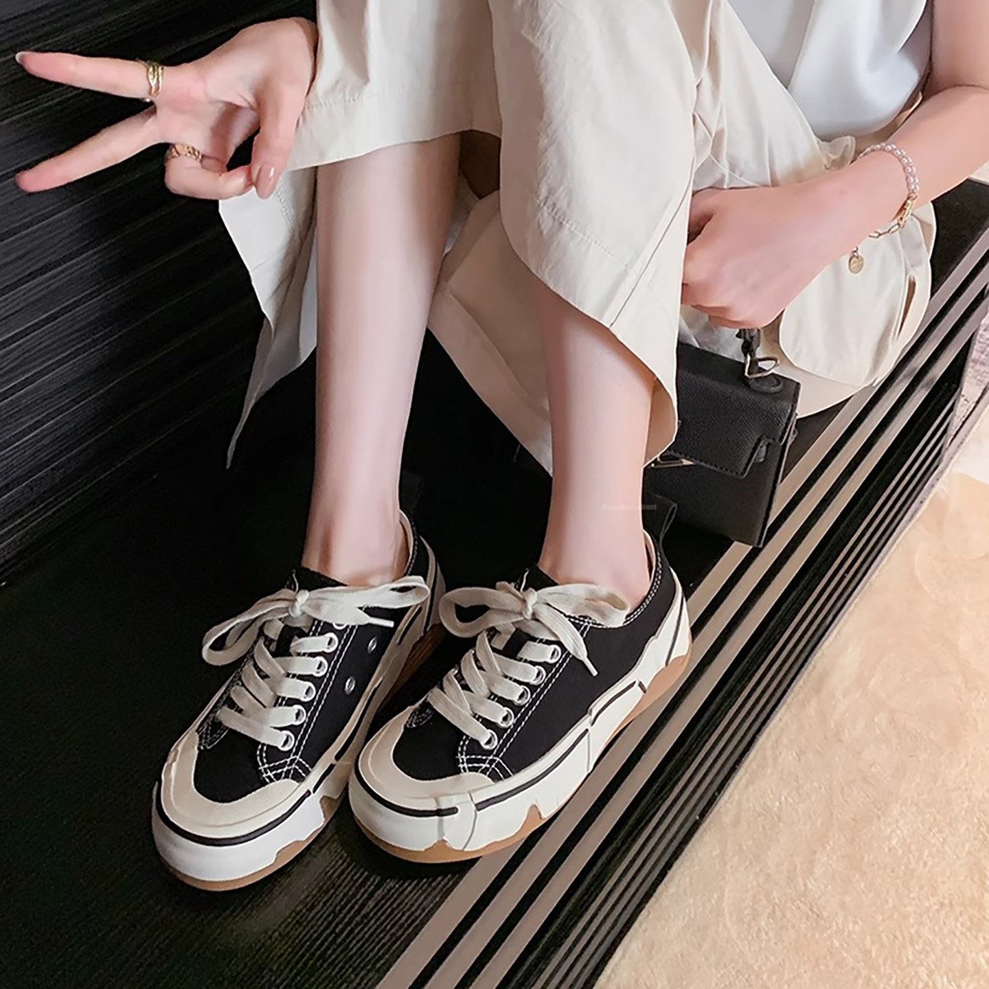 Hong Kong ins super hot canvas shoes, Korean version trendy versatile little black shoes, platform shoes, women's summer breathable sports and casual shoes