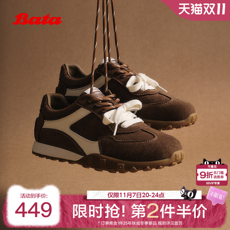 Bata Cookie Soft Cheese 2025 Autumn Mall New Two-Color Shoelace Retro Casual Sports Forrest Forrest Gump Shoes 6589DCM5