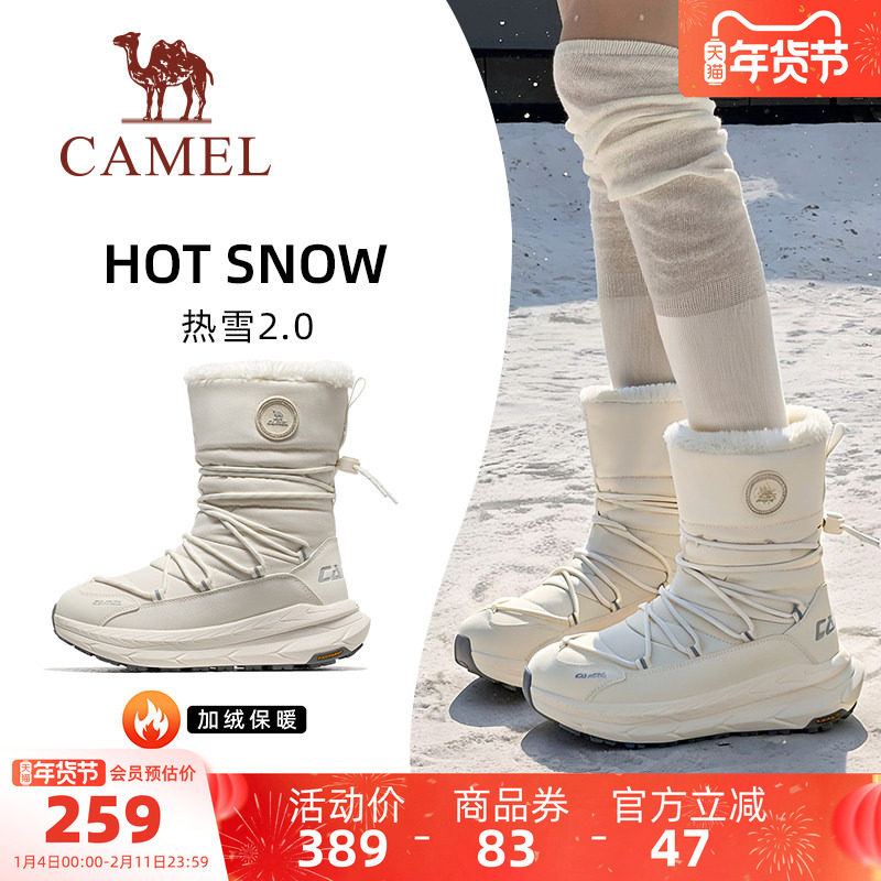 Camel Hot Snow 2.0 Sneakers, Winter Outdoor Snow Boots, High-Top Women's Shoes, Non-Slip, Waterproof, Fleece, Warm Cotton Shoes