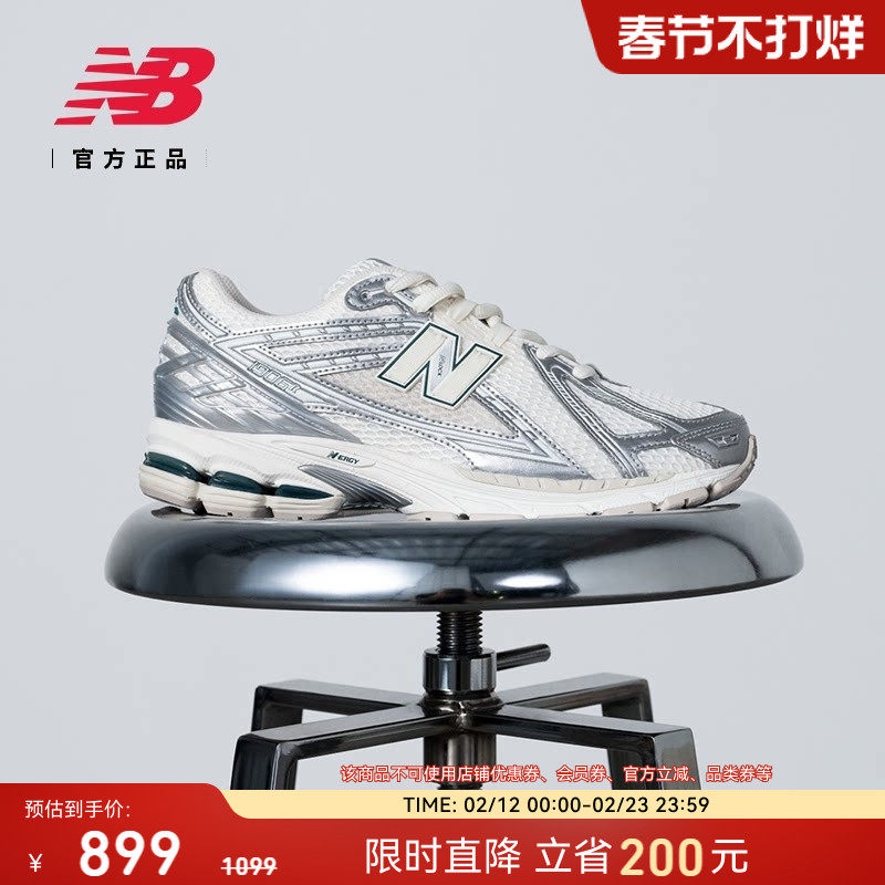 IU Same Style丨New Balance NB Official Valentine's Day Winter Men's and Women's Silver Mesh Daddy Shoes M1906REE