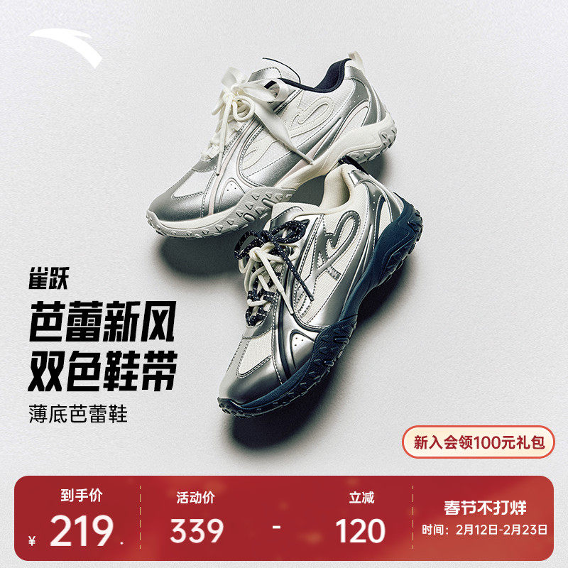 Anta Jue丨Dance thin sole shoes, ballet style, silver casual moral training shoes, women's T-toe shoes, trendy sneakers