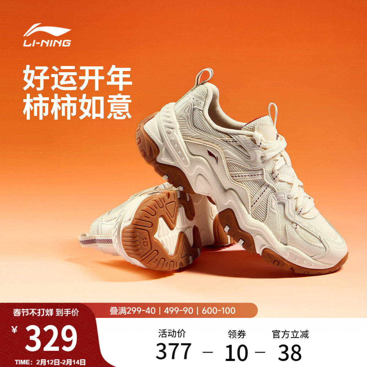 Li Ning Brown Sugar丨Casual shoes men's shoes 2026 New Year's retro daddy shoes natal year heightened sports shoes
