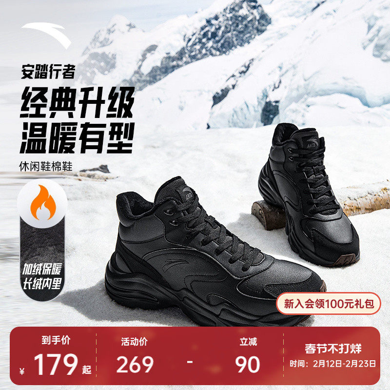 Anta Walker丨Fleece warm high-top leather cotton shoes men's and women's shoes 2025 winter thickened sports and casual shoes