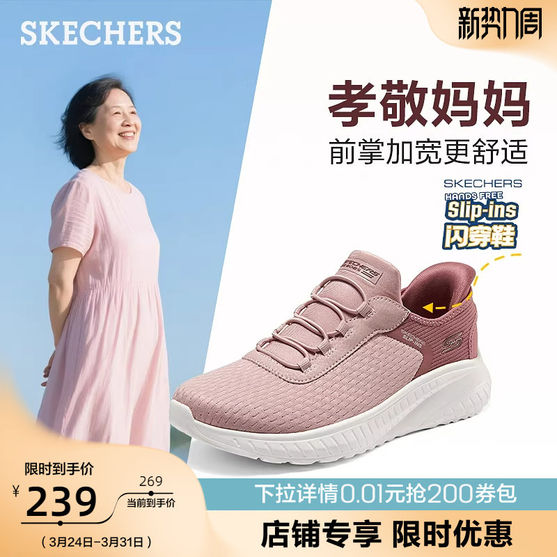Skechers flash shoes, light pedaling shoes, women's shoes, mother's shoes, middle-aged and elderly summer wide last casual shoes