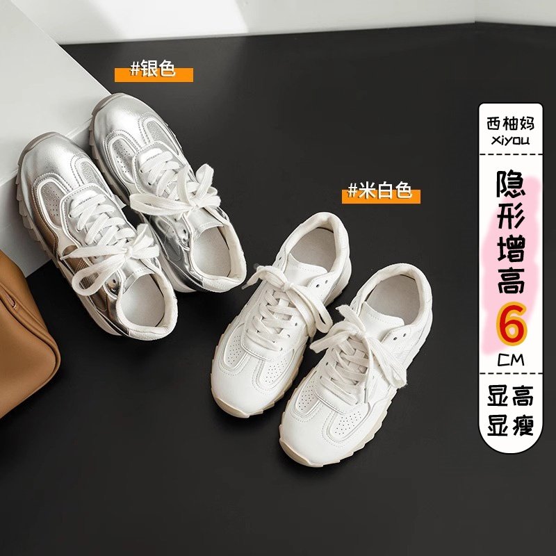 Hong Kong genuine leather silver daddy shoes women's 2026 spring/summer new thick-soled heightened, lightweight and small sports and casual shoes