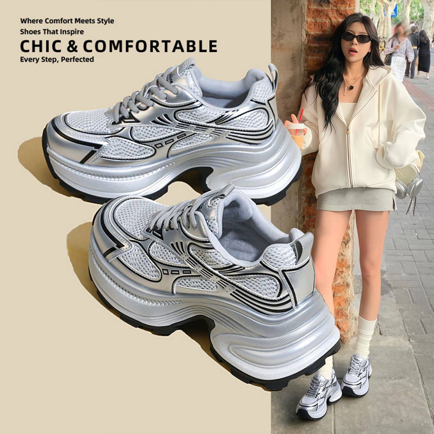 Hong Kong Paris Retro Platform Daddy Shoes Women's Mesh Breathable 2026 Spring and Autumn Add High Versatile Sports and Leisure Shoes