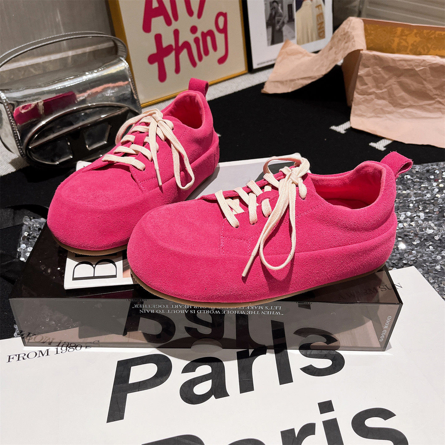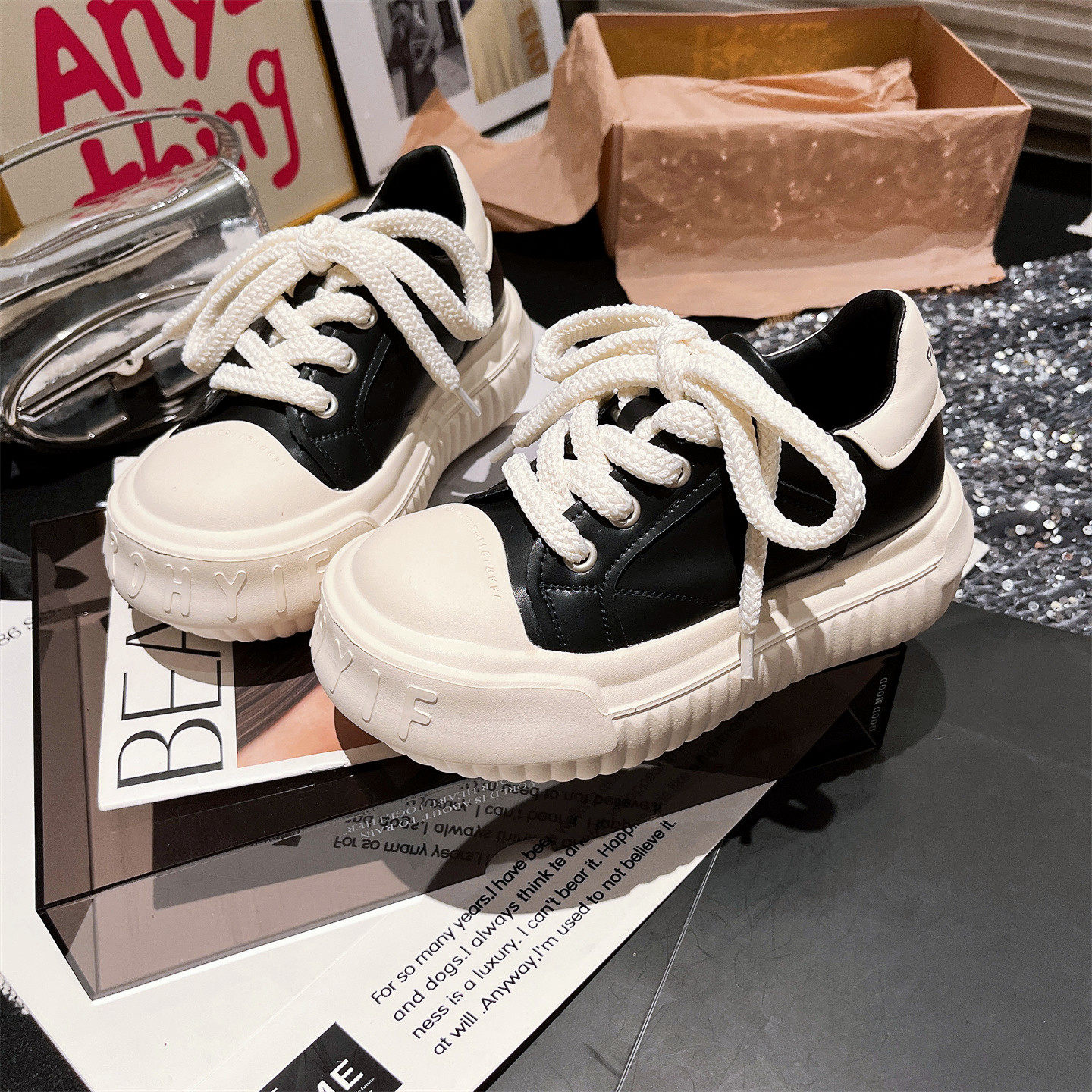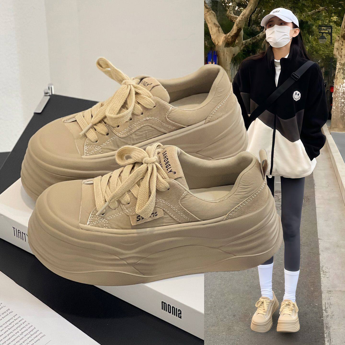 Hong Kong Versatile Height Increase Big-Headed Breadboard Shoes Women's 2026 Spring/Summer New Fashion Muffin Platform Sports and Leisure Shoes