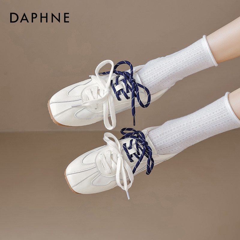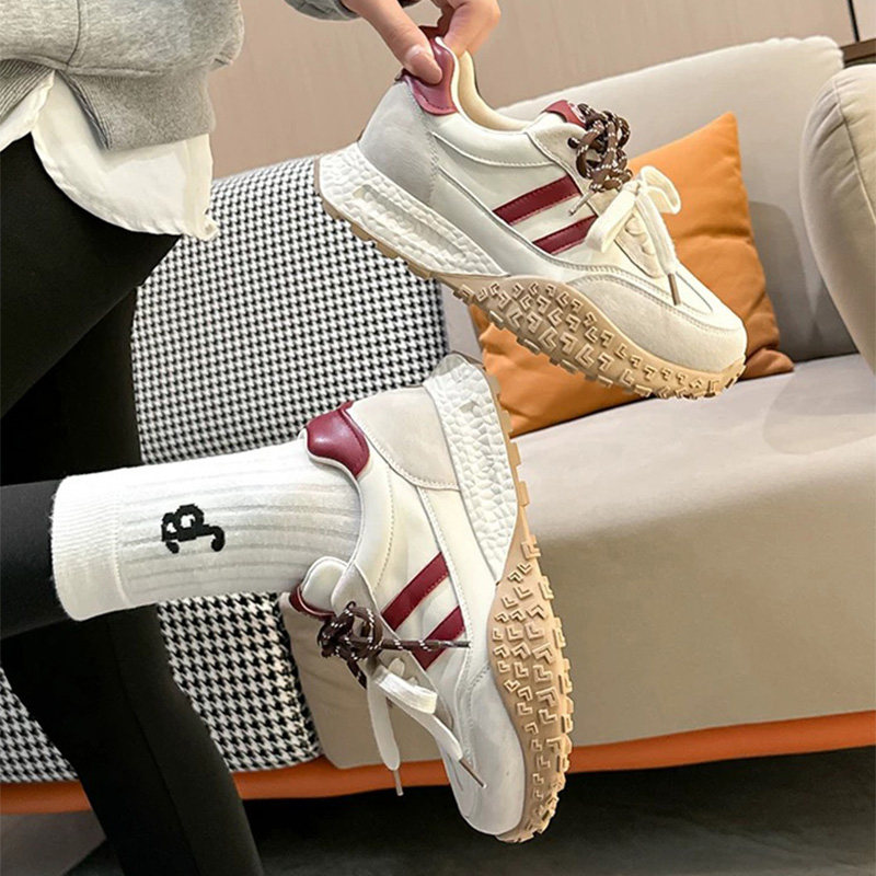 Hong Kong leather breathable thick-soled round-toe lace-up sneakers women's 2026 spring/summer new small versatile German training shoes