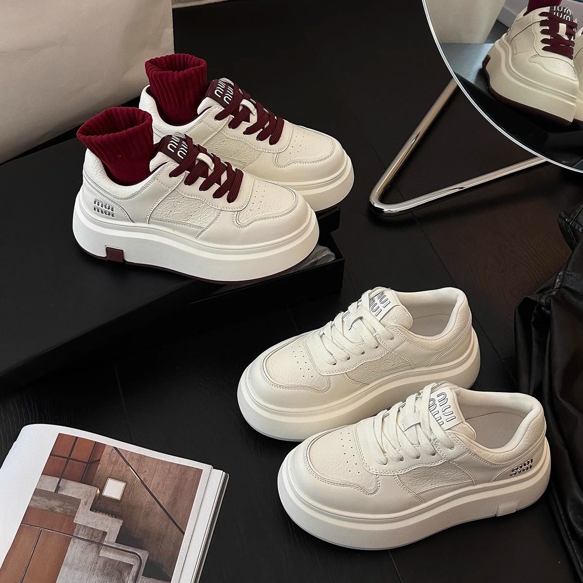 Hong Kong McQueen leather white shoes women's 2026 spring and autumn new lace-up casual fashion muffin platform shoes Korean version