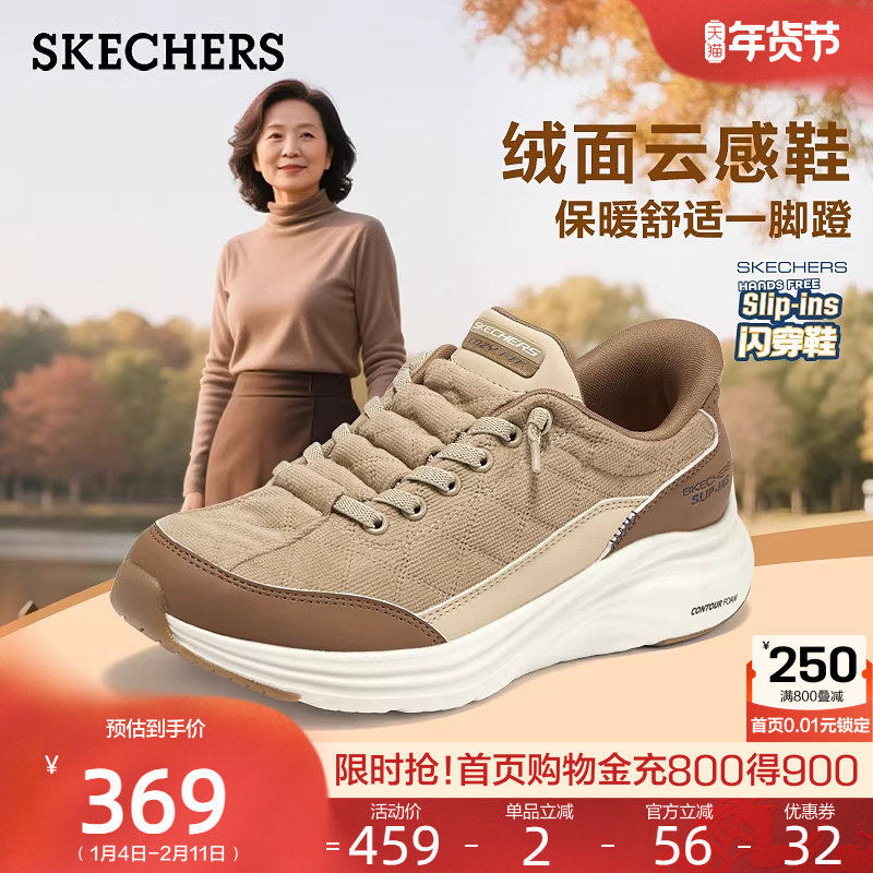 Skechers flash cloud shoes, women's shoes, autumn and winter fleece to keep warm, a pair of casual sneakers, and wide-last mother's shoes