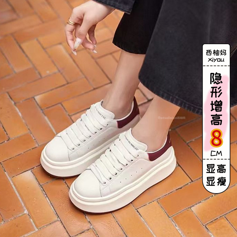 Hong Kong Genuine Leather McQueen White Shoes Women's 2026 Spring and Autumn New Thick Sole Heightening Shoes Breathable Sports Leisure Board Shoes