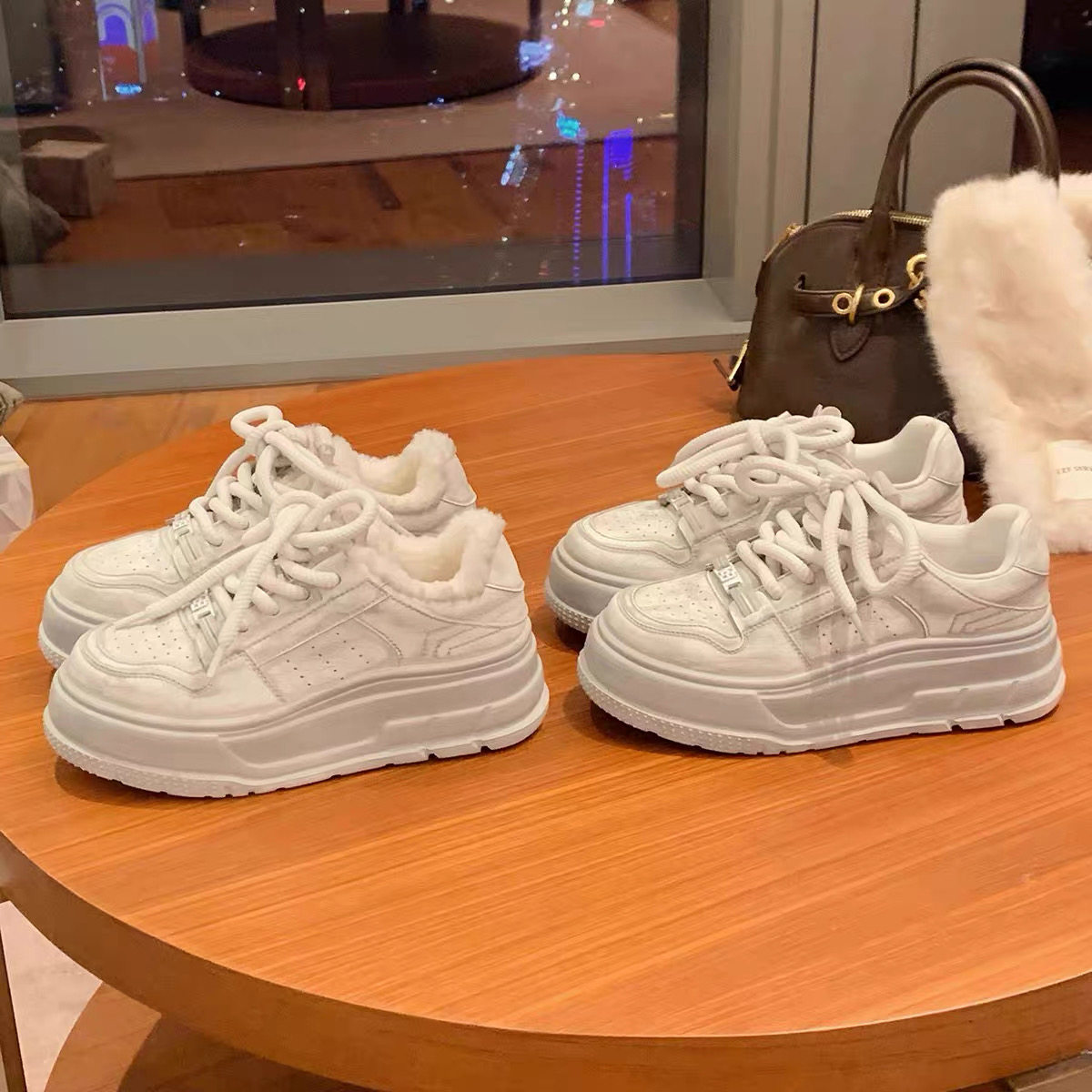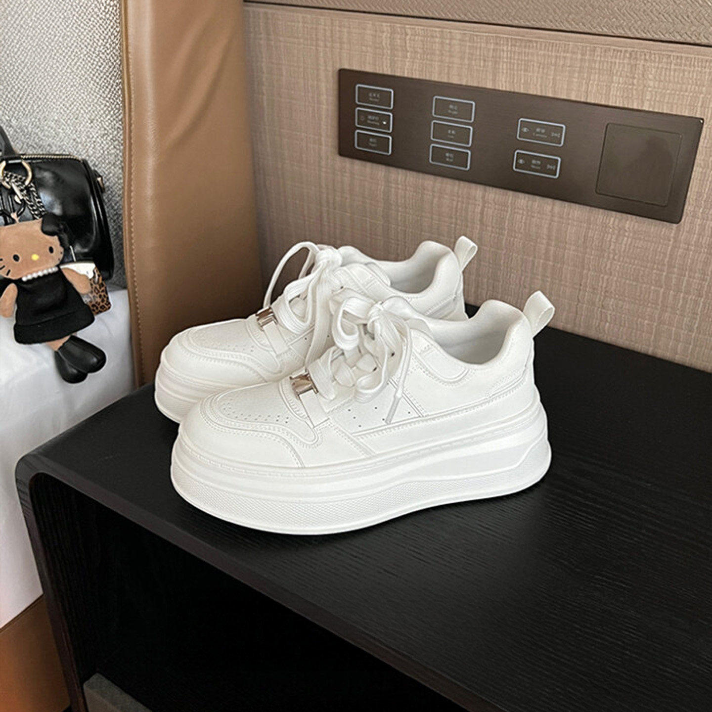 Hong Kong leather muffin daddy shoes women's 2026 spring and autumn new versatile inner height thick-soled casual sports white shoes