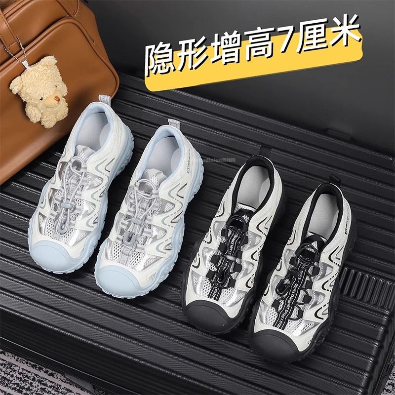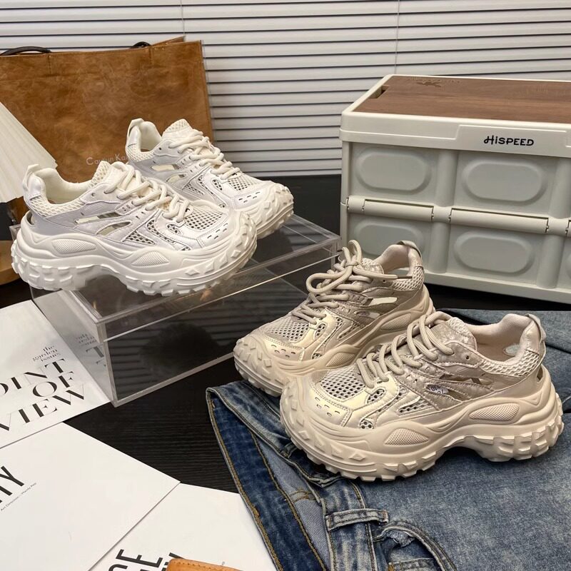 Hong Kong leather cut-out fashion retro daddy shoes women's 2026 summer mesh breathable thick sole heightened casual sneakers