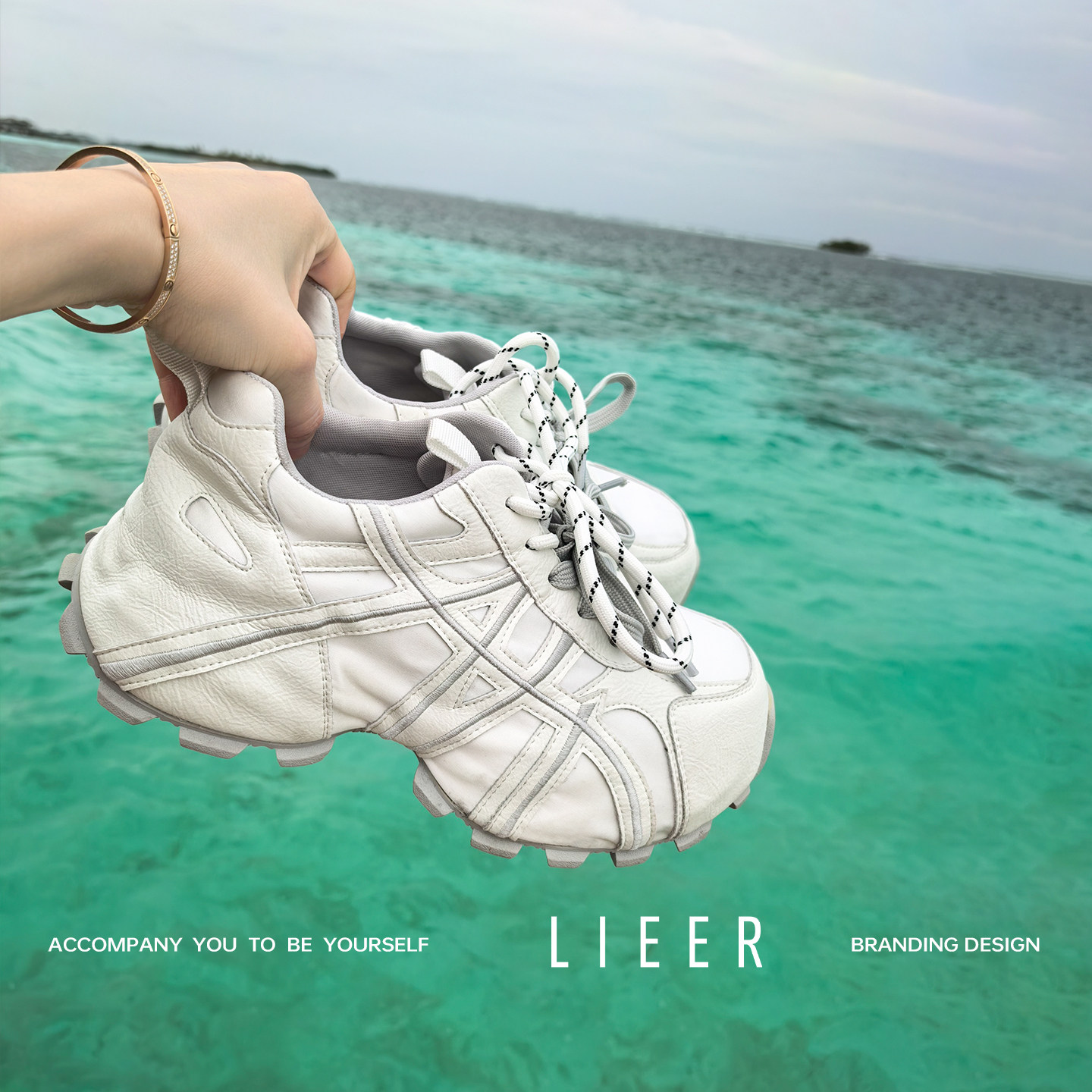 Lier LIEER "Liquid Daddy Shoes Spring and Summer Edition" fashionable double laces increase height and thick soles to slim down daddy shoes