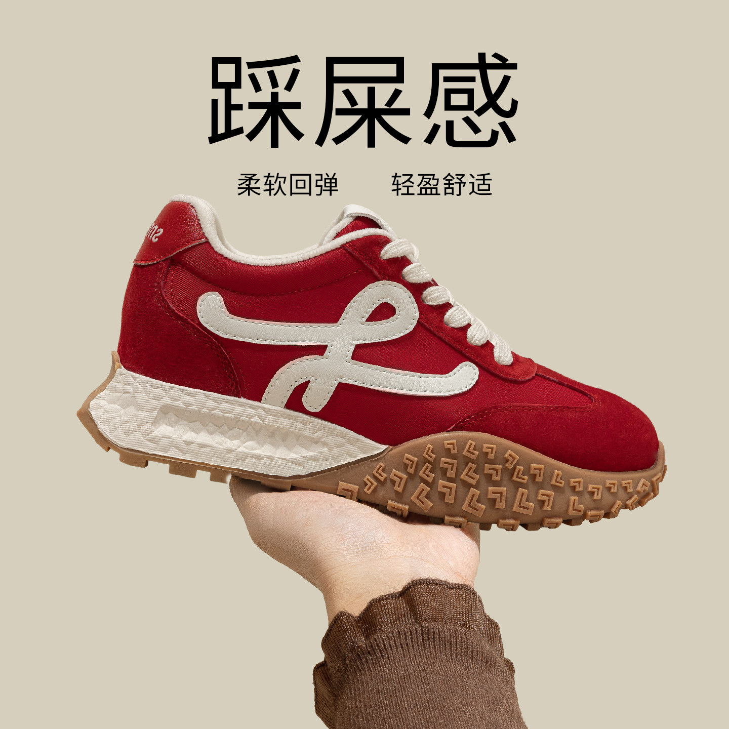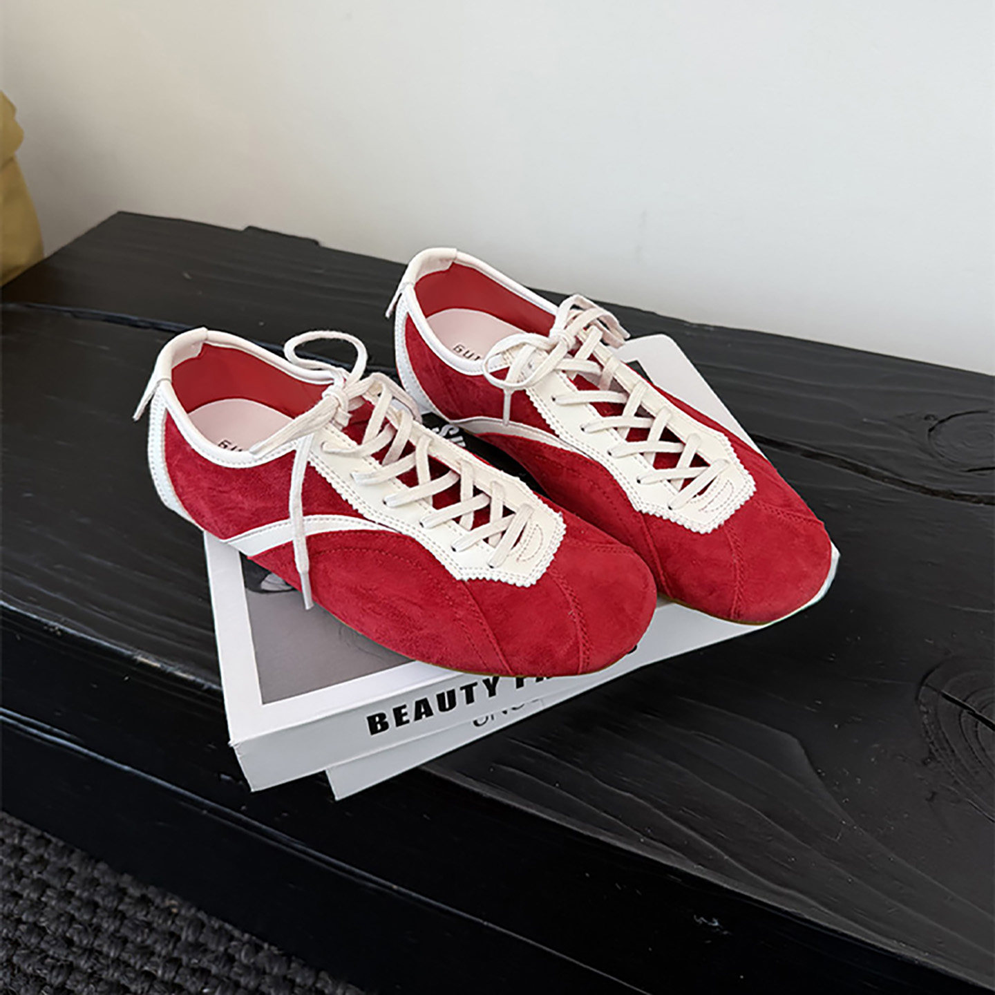 Red shoes, thick-soled German training shoes, women's 2026 new spring women's shoes, inner heightening casual shoes, versatile sneakers
