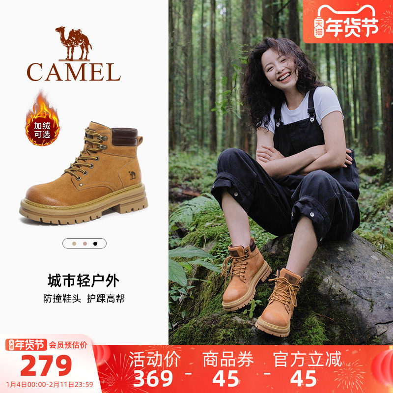 Camel rhubarb boots, Martin boots, women's 2025 new British-style winter platform boots, hiking shoes, cargo booties