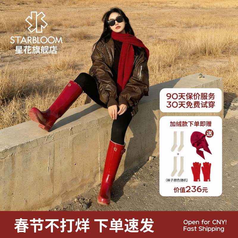 starbloom/Star Flower Wellington rain boots plush women's Spring Festival New Year wear outdoor New Year's non-slip water shoes