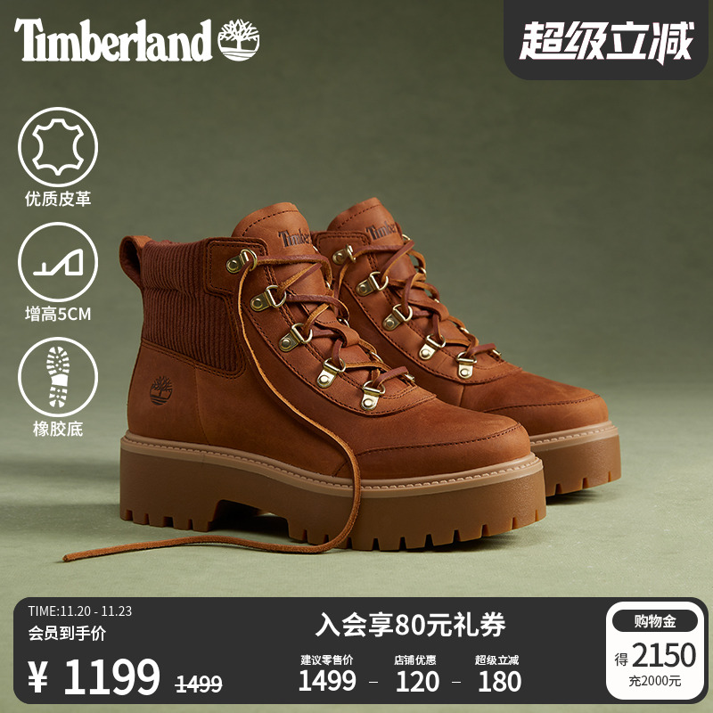 [Height increase 5CM] Timberland official women's shoes high-top boots outdoor casual platform soles| A42P8