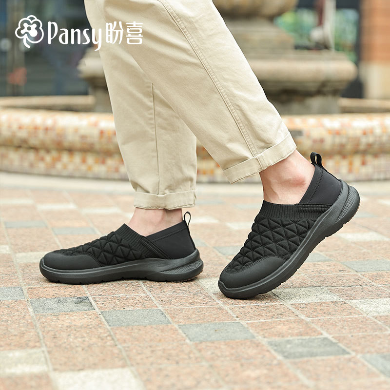 Pansy Japanese men's shoes can be worn with two heels, widened, breathable, lightweight and comfortable black versatile casual shoes