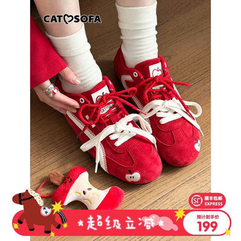 Cat and Sofa/Apple Shoes Red Thin Sole Racing Shoes New Couple Training Shoes Classic Versatile Skateboarding Shoes