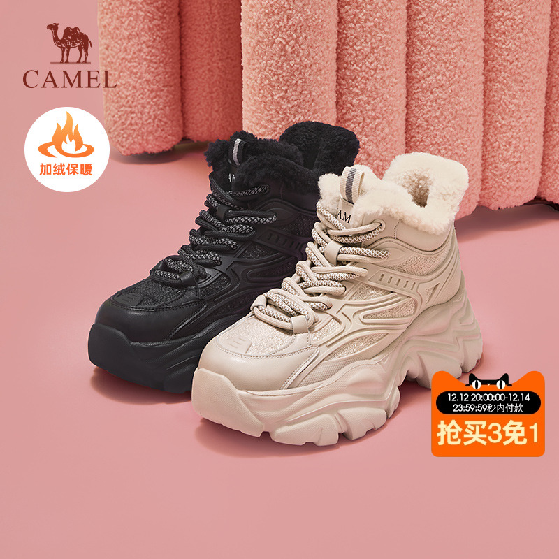 Camel women's shoes autumn and winter fleece daddy shoes women's platform high-sole cotton shoes women's high shoes warm snow boots