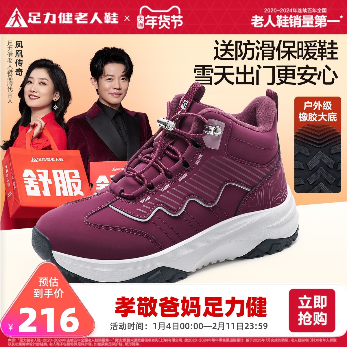 Zulijian flagship store 2025 winter new shoes for the elderly, thickened warm shoes, cotton shoes, fleece women's high-top shoes
