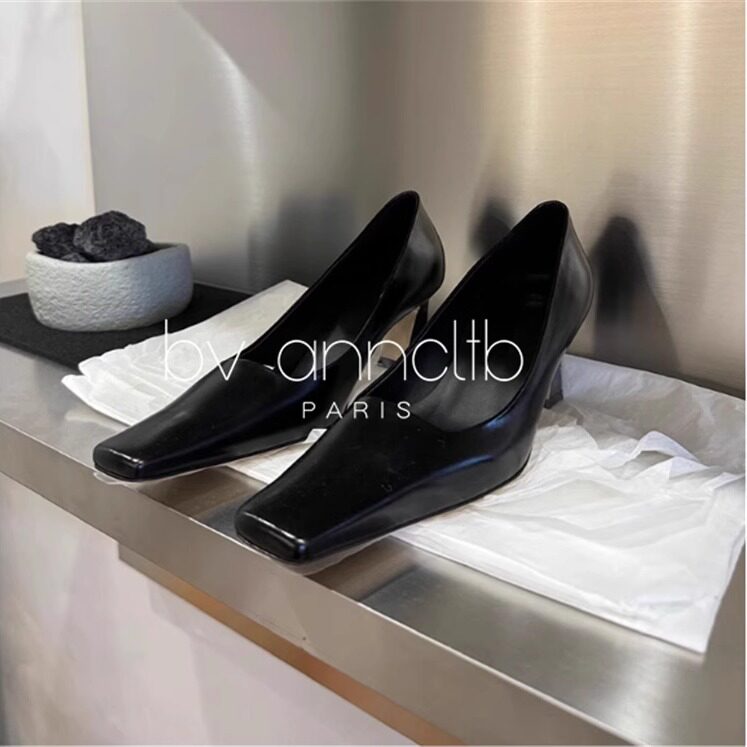 BV AnnCLTB Autumn New Square Toe Pumps Single Shoes Women's Thick Heels Temperament Versatile Black Slip Heels