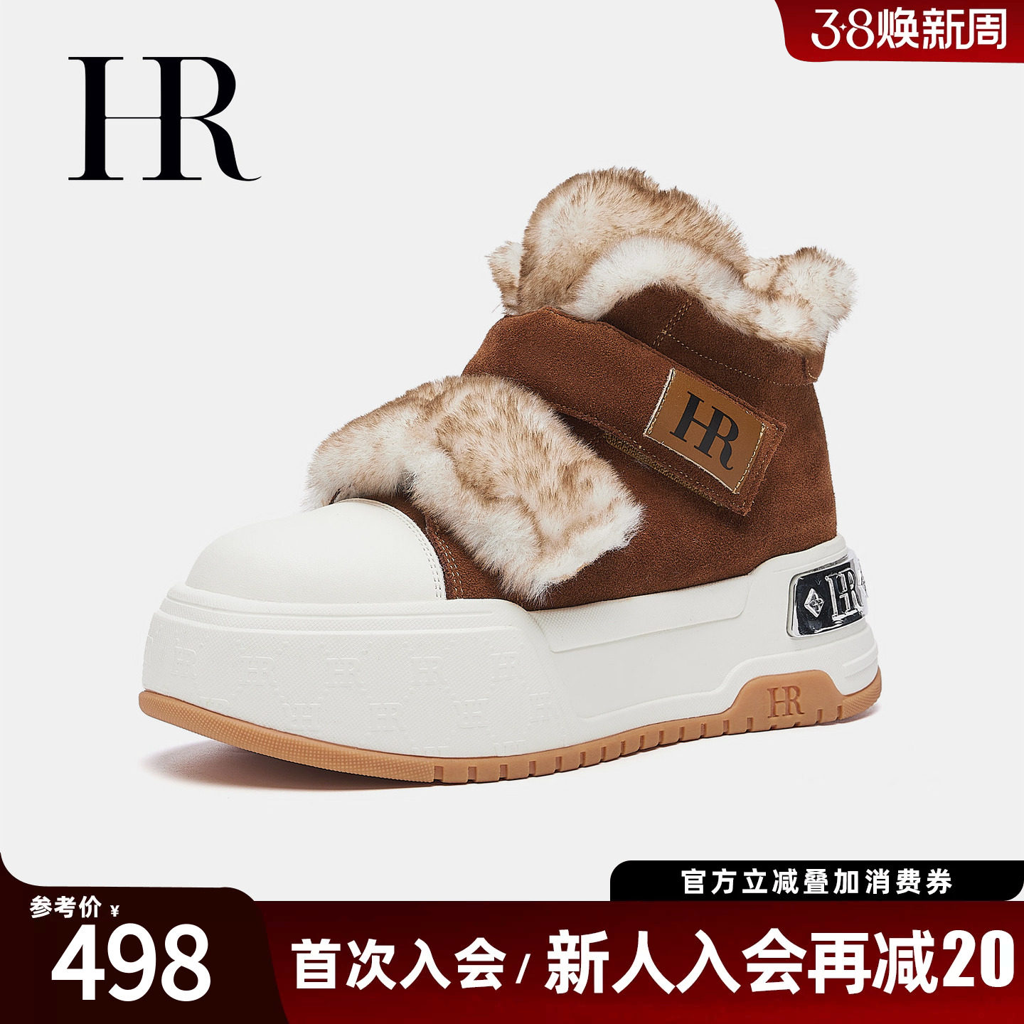 HR Helena High Top Snow Boots 2026 Winter New Women's Shoes Platform Velcro Fleece Warm Wool Shoes