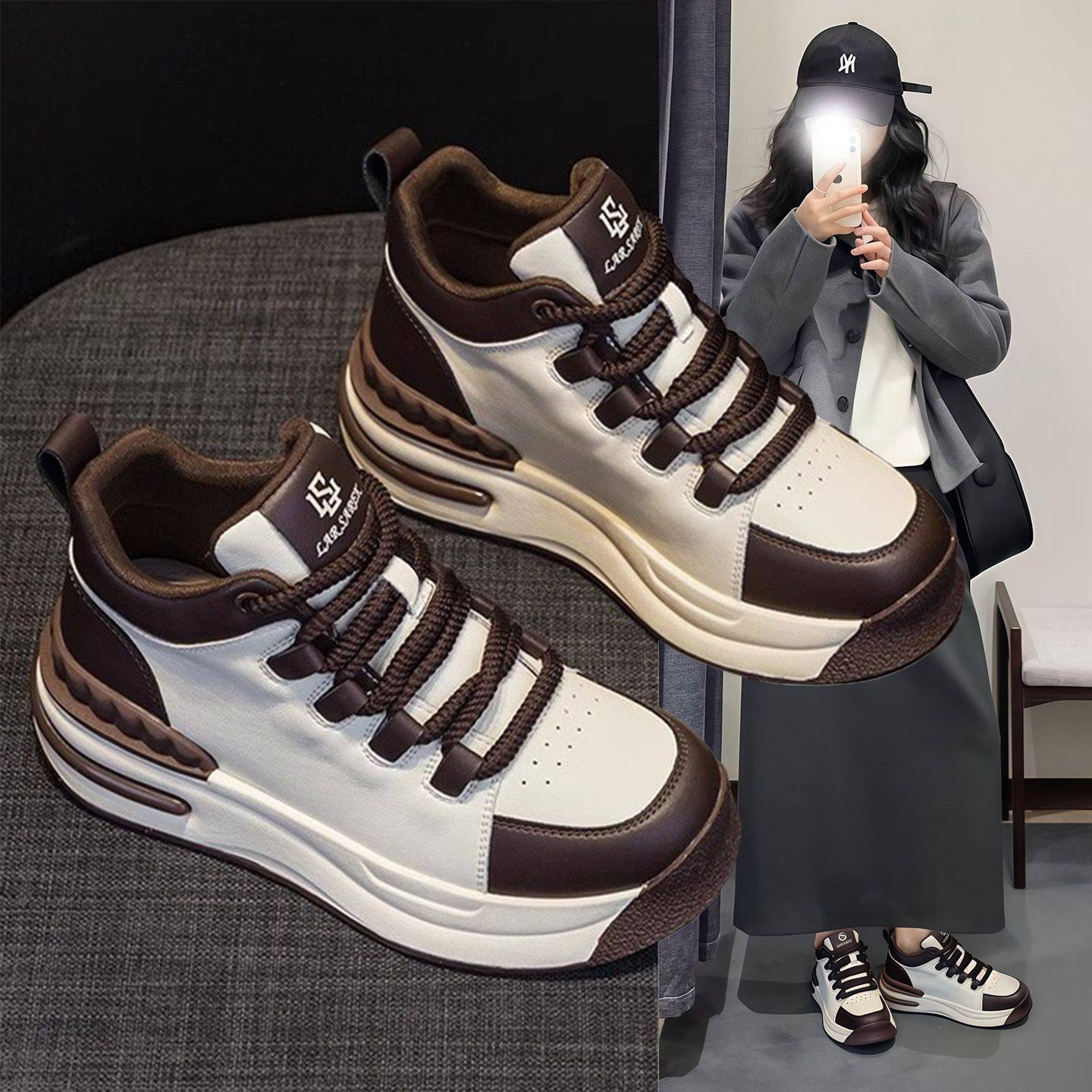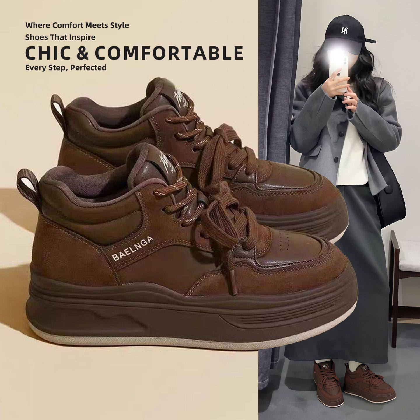 Hong Kong leather encore red fashion high-top shoes women's 2025 spring and autumn height increase sports versatile platform casual shoes